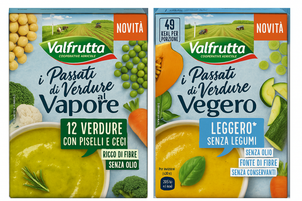 Valfrutta lancia due nuove referenze 100% vegetali, preparate con verdure selezionate e cottura al vapore per preservare gusto e proprietà nutrizionali. Si tratta dei Passati di Verdure al Vapore “Leggero senza Legumi” e “12 Verdure con Piselli e Ceci”, disponibili nel formato da 500 grammi in confezione di cartone riciclabile.
